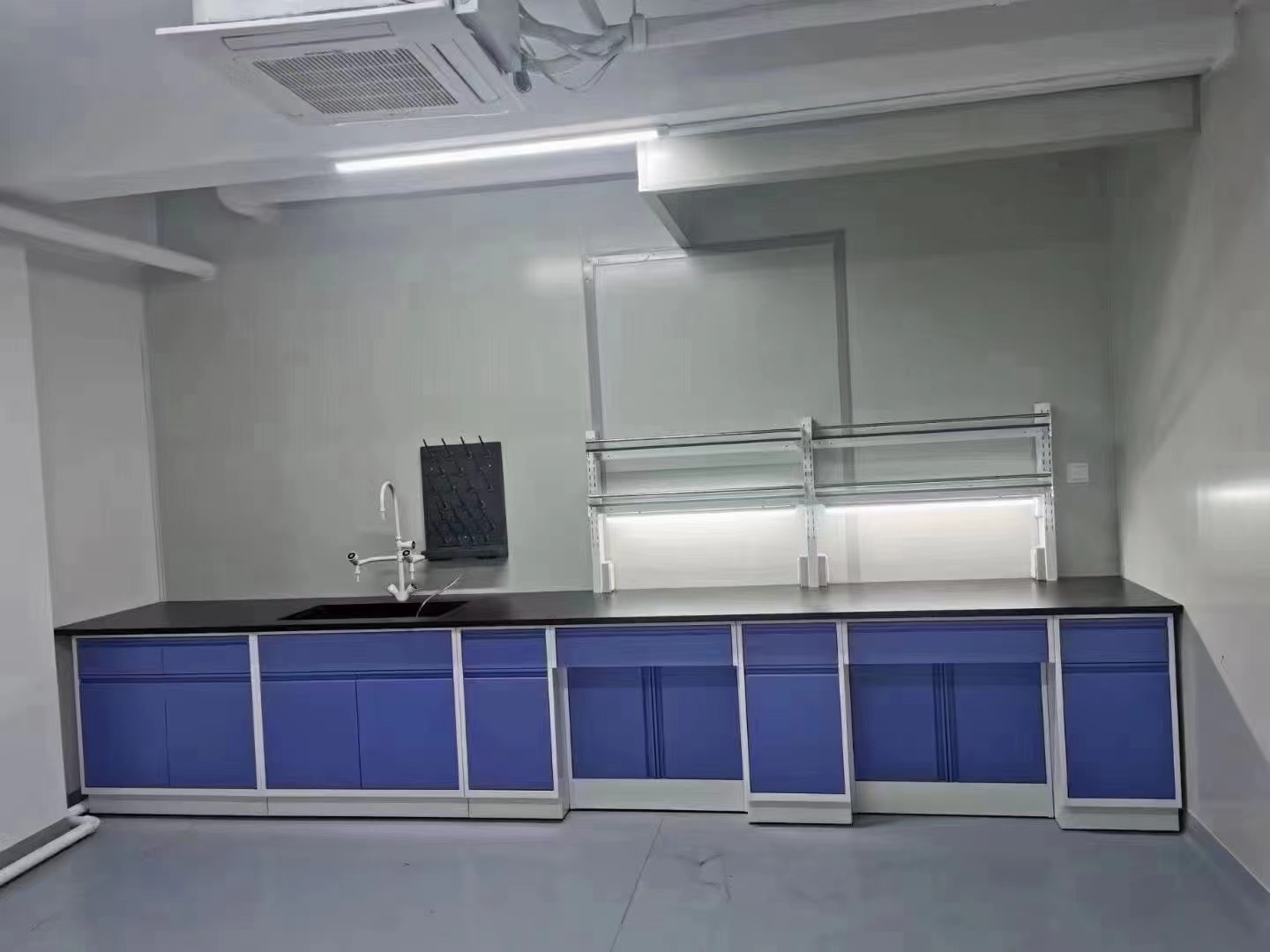 3.柜體和儲(chǔ)物空間:中央臺(tái)下方配有柜體或抽屜,用于存放實(shí)驗(yàn)器材、工具和化學(xué)試劑。柜體通常采用雙層鋼板結(jié)構(gòu),內(nèi)部配有可調(diào)節(jié)的隔板,方便根據(jù)實(shí)驗(yàn)需求調(diào)整存儲(chǔ)空間的大小。